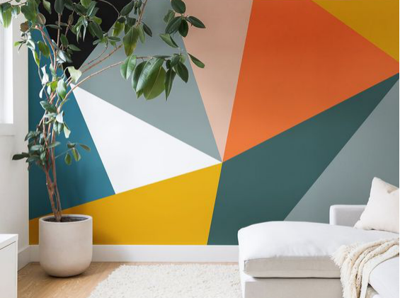 Untuk membuat kreasi cat tembok wajik seperti gambar di atas, kamu hanya memerlukan masking tape atau solasi untuk membentuk polanya. Bagilah area yang akan dicat menjadi beberapa bagian, lalu cat bagian-bagian tersebut dengan warna favoritmu. Setelah cat kering, pastikan kamu melepas masking tape dengan hati-hati dan perlahan, supaya dinding bermotif wajik mendapatkan hasil akhir yang cantik dan elegan.