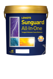 Untuk cat tembok eksterior rumahmu, gunakanlah Sunguard All-In-One, cat tembok eksterior ini mampu menahan panas, menurunkan suhu ruangan 5 derajat Celcius lebih sejuk dan warna cat tidak mudah pudar karena perlindungan yang luar biasa terhadap sinar UV.