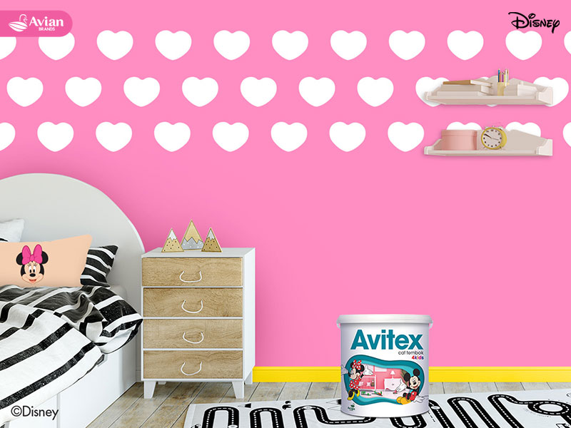 Untuk menentukan warna sesuai dengan karakter tokoh yang disukai si kecil, kamu bisa pilih berbagai varian warna dari Cat Tembok Avitex 4kids. Selain warna-warnanya cocok diaplikasikan pada kamar anak, cat ini juga dilengkapi fitur anti bakteri, anti jamur dan lumut, dan sangat baik untuk menutupi ketidasempurnaan pada tembok.