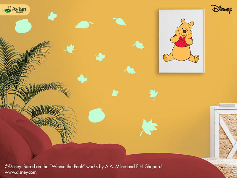 Untuk menambahkan kesan berbeda pada kamar anak, kamu bisa mengaplikasikan pola / karakter yang disukai si kecil bersama cat spesial efek HomeDeco Glow in the Dark yang dapat menghasilkan efek glow in the dark atau menyala dalam gelap, sehingga siluet karakter yang diaplikasikan dapat menyala saat lampu kamar dipadamkan.