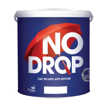 No Drop cat pelapis anti bocor dari Avian Brands adalah produk cat tahan air yang sangat cocok diaplikasikan pada berbagai area rumah yang sering memiliki masalah kebocoran. Produk cat ini dapat diaplikasikan dengan mudah pada area dinding, atap, talang air, dan dak beton dan memiliki perlindungan hingga 7 tahun. Selalu pastikan untuk membersihkan dan menyiapkan permukaan dengan benar sebelum mengaplikasikan No Drop dan ikuti petunjuk yang tertera pada kemasan cat untuk mendapatkan hasil terbaik. Juga, pertimbangkan kondisi cuaca saat akan melapisi rumah dengan No Drop untuk memastikan proses pengeringan yang optimal dan hasil yang tahan lama.