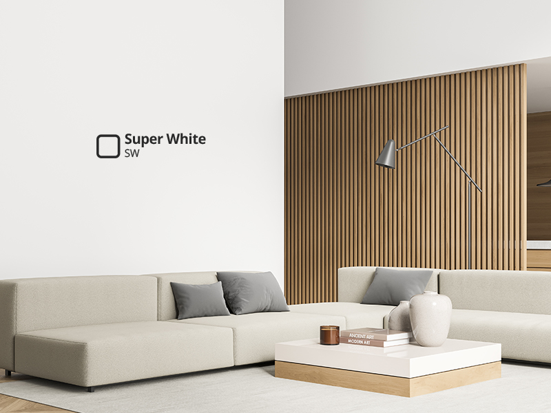 Warna putih bisa membuat ruangan nampak lebih lapang, bersih, dan terang sehingga cocok digunakan pada ruangan sempit agar terasa nyaman. Penggunaan warna putih pada interior rumah sangat populer dan cocok dipadukan dengan berbagai warna dan konsep desain interior.