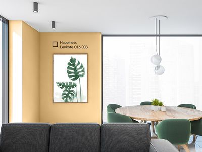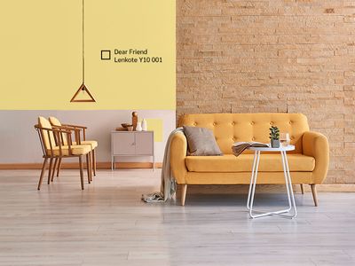 Area ruang tamu hendaknya mampu memberikan simbol kehangatan pemilik rumah yang ingin dikenal oleh tamunya. Warna Dear Friend (Lenkote Y10 001) sangat cocok diaplikasikan pada area menjamu tamu untuk memberikan kesan bersahabat, ramah, ceria, dan ringan.