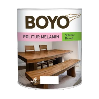 Untuk merawat furnitur kayu agar tetap dalam kondisi terbaiknya, gunakan Boyo Politur Melamin dari Avian Brands. Cat pelapis kayu ini efektif melindungi furnitur kayu eksterior dan interior dari panas dan hujan. Cara pengaplikasiannya pun mudah, hanya dengan pengaplikasian 2-3 kali lapis, furnitur kayu milikmu telah mempunyai perlindungan maksimal. Selain melindungi permukaan kayu, Boyo Politur Melamin juga mempercantiknya. Produk cat kayu ini tersedia dalam 6 warna yang dapat dipilih untuk membuat tampilan furnitur kayu jadi menawan.