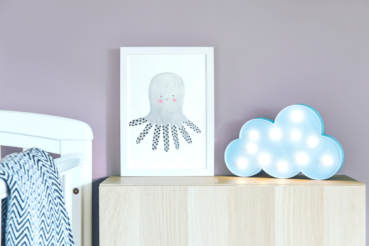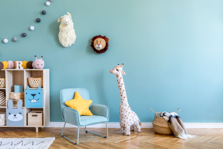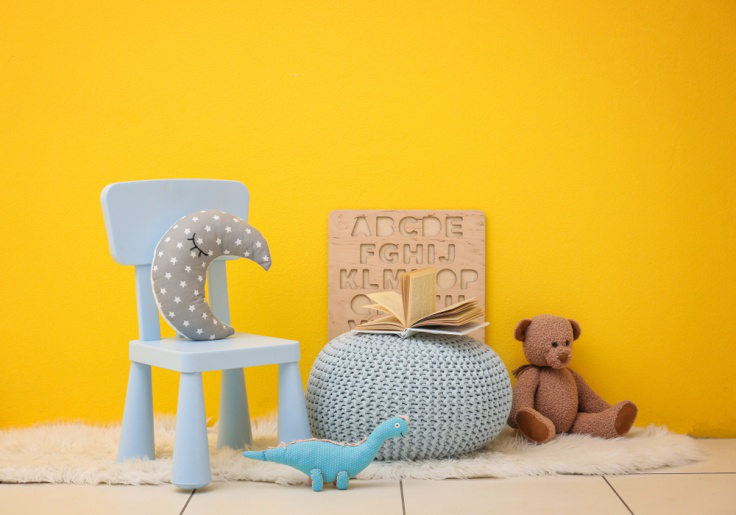 Warna biru identik dengan perdamaian dan kebijaksanaan. Selain itu, warna berikut ini juga dapat membantu menenangkan saraf si anak, serta memberikan kualitas tidur yang baik di malam hari.