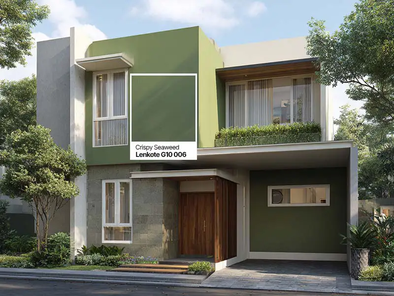Sage Mist adalah warna hijau lembut dengan tone keabu-abuan yang memberikan efek menenangkan. Tak terlalu bold, tapi juga tidak membosankan. Cocok untuk rumah yang dikelilingi taman atau berada di area suburban. Warna ini membawa suasana adem tanpa kehilangan sentuhan modern yang clean.