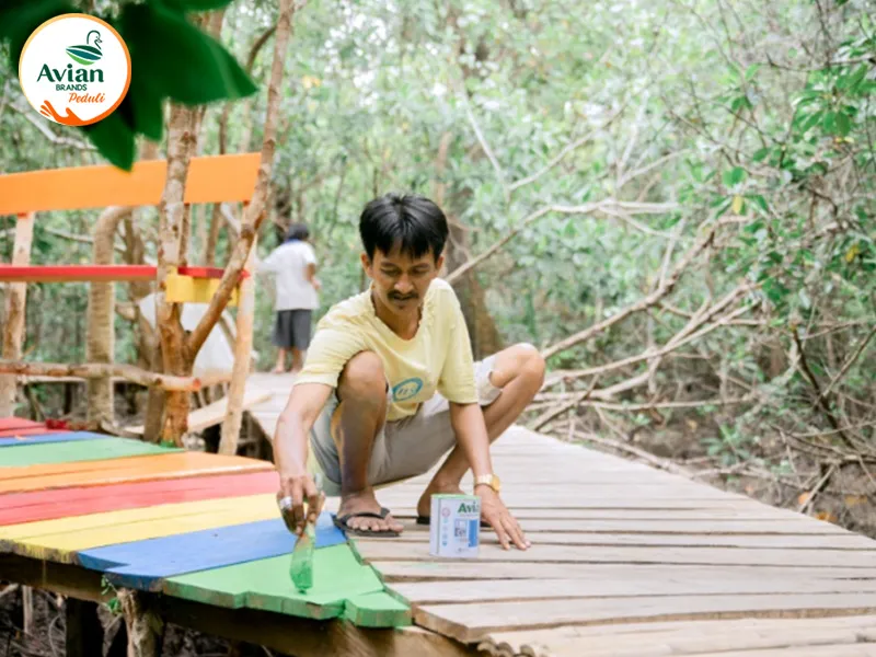 Pengembangan area wisata dimulai dengan membangun track atau jembatan yang terbuat dari papan bekas perahu sebagai jalur untuk menyusuri keindahan alam di hutan bakau ini. “Kaki jembatan dibangun menggunakan kayu gelam yang dikenal sangat kuat di dalam air. Pembangunan track ini tidak mengganggu pertumbuhan tanaman bakau bahkan tidak dilakukan pemotongan apalagi penebangan” ungkap Herman, Ketua Pengelola Hutan Mangrove. Sebagai bentuk kepedulian serta dukungan terhadap pariwisata Indonesia, Avian Brands memberikan sentuhan warna warni baru pada jembatan dan berbagai area lainnya pada Suak Parak Mangrove dengan produk cat berkualitas.